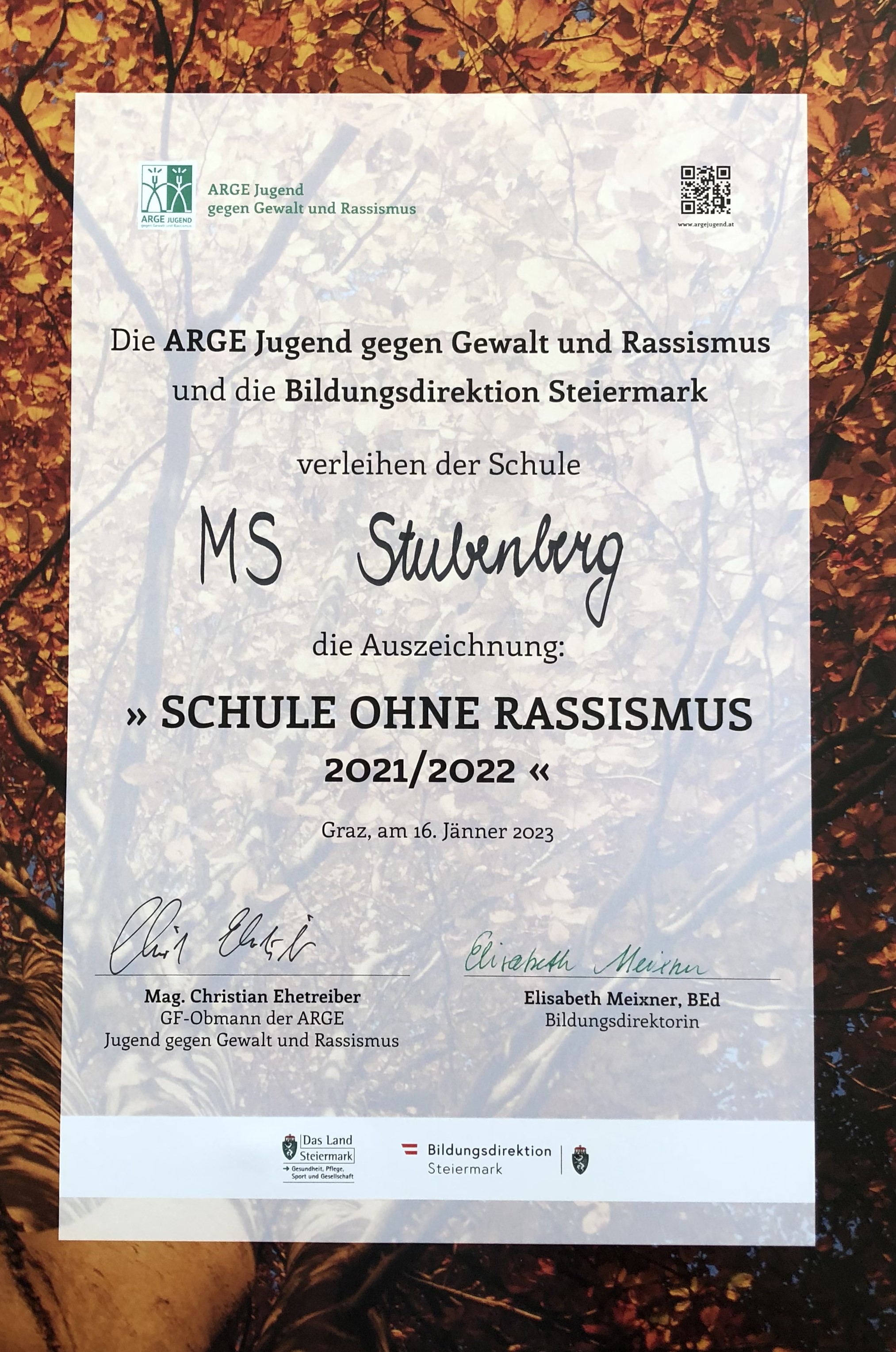 Das Projekt „Mut tut gut“ der MS Stubenberg wurde beim TrauDi! Kinderrechtspreis 2021 mit dem 1. Preis ausgezeichnet.
